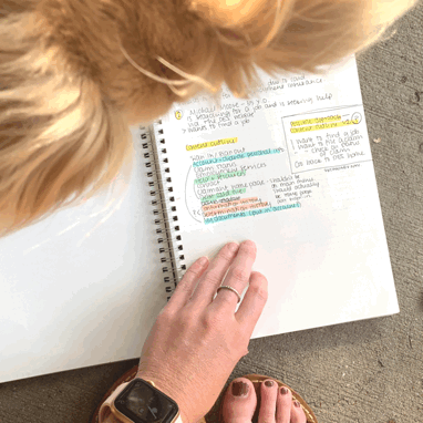 Beginning content outline and low fidelity wireframes. And my dog Finn.